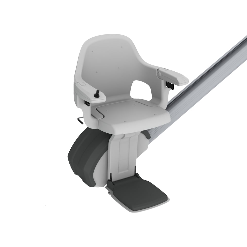 The Outdoor model maintains all the essential safety features of the indoor models, such as emergency stop buttons and sensitive safety edges that detect any obstructions, providing a safe and secure method of accessing outdoor areas. Battery operation is a critical feature, offering assurance that the stairlift will function even during power outages. This model is also compliant with the same rigorous safety standards as the indoor versions and includes optional extras like a remote control, making it as convenient as it is durable. Whether you’re looking to access a garden terrace or navigate to an elevated backyard, the HomeGlide Outdoor straight stairlift ensures that your outdoor spaces remain accessible and enjoyable, regardless of the weather.